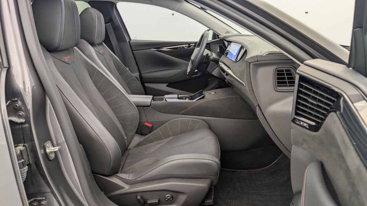 intérieur tissu tressé basalte avec alcantara : planche de bord en alcantara panneaux de portes en alcantara console centrale en alcantara sellerie en tissu tressé basalte avec alcantara et toile ds décors de panneaux de porte chrome guilloché volant en cuir fleur mistral avec surpiqûres ciel de pavillon salin