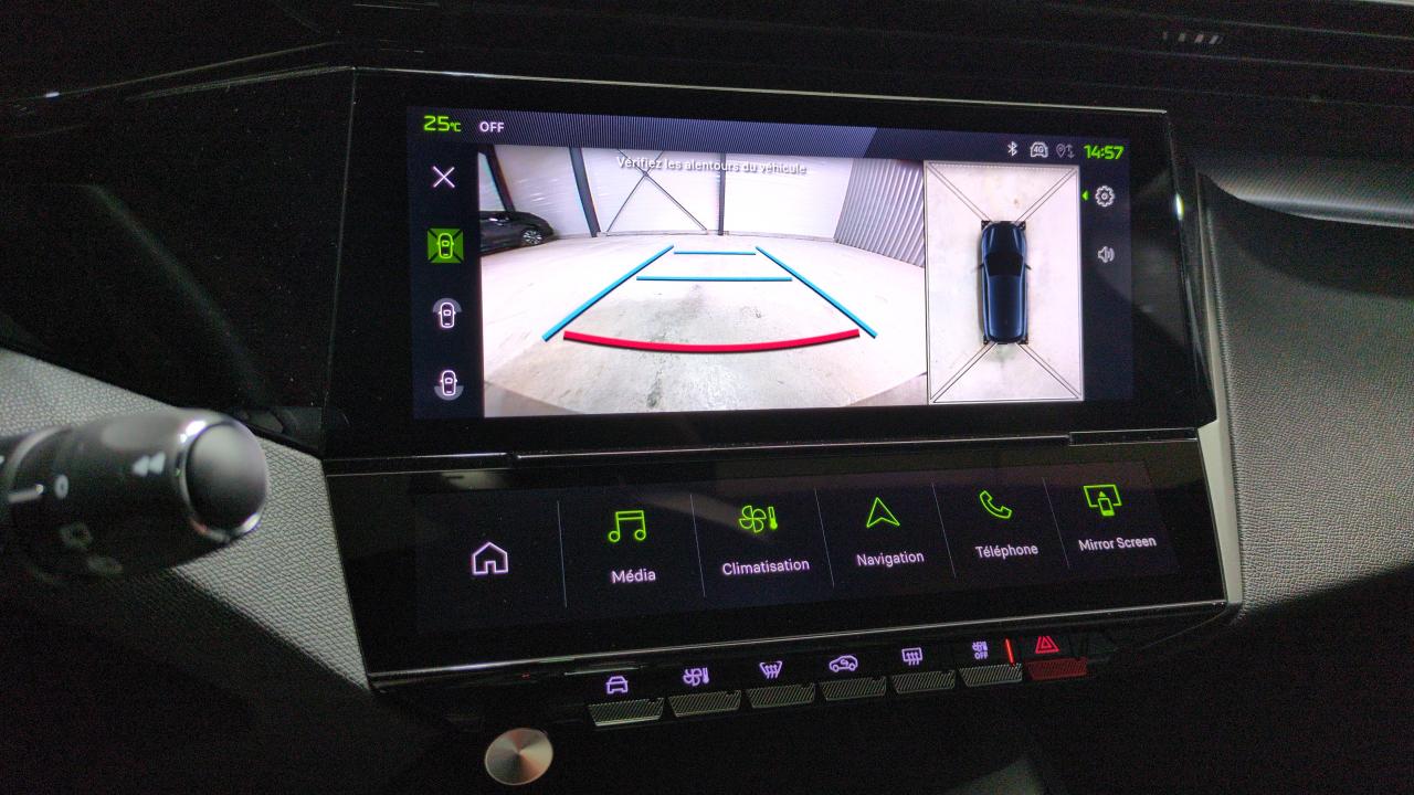 pack vision 360° & pack drive assist plus : visiopark 360° + peugeot i-cockpit 3d avec combiné d'instrmentation numérique 10" personnalisable + rear warning : surveillance d'angles morts