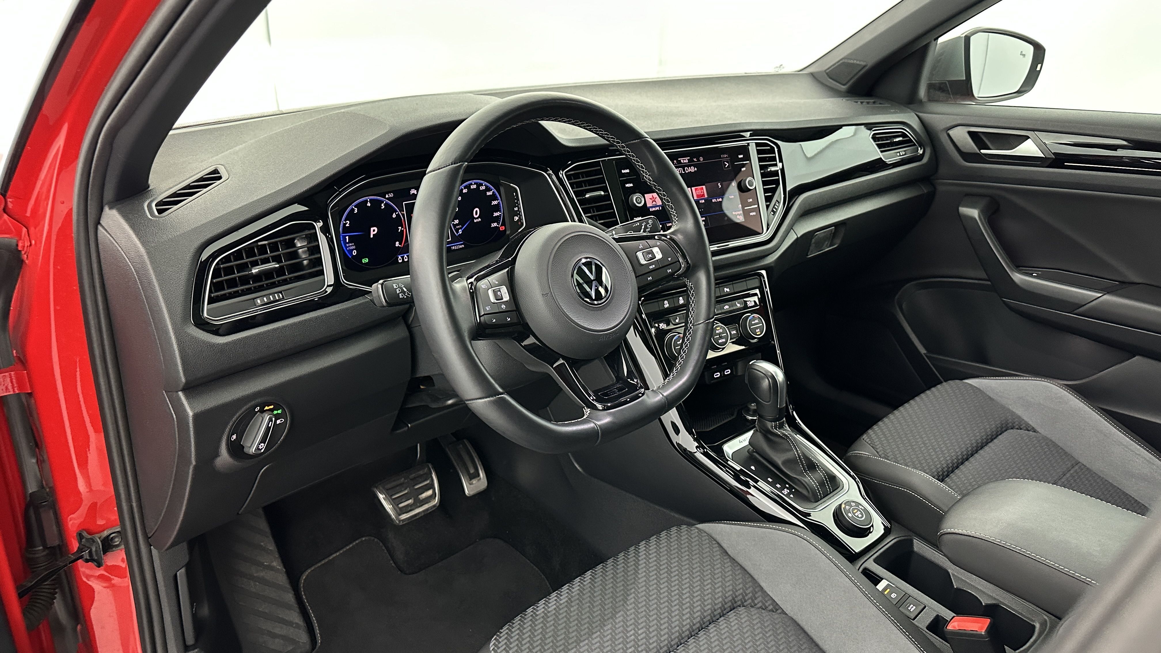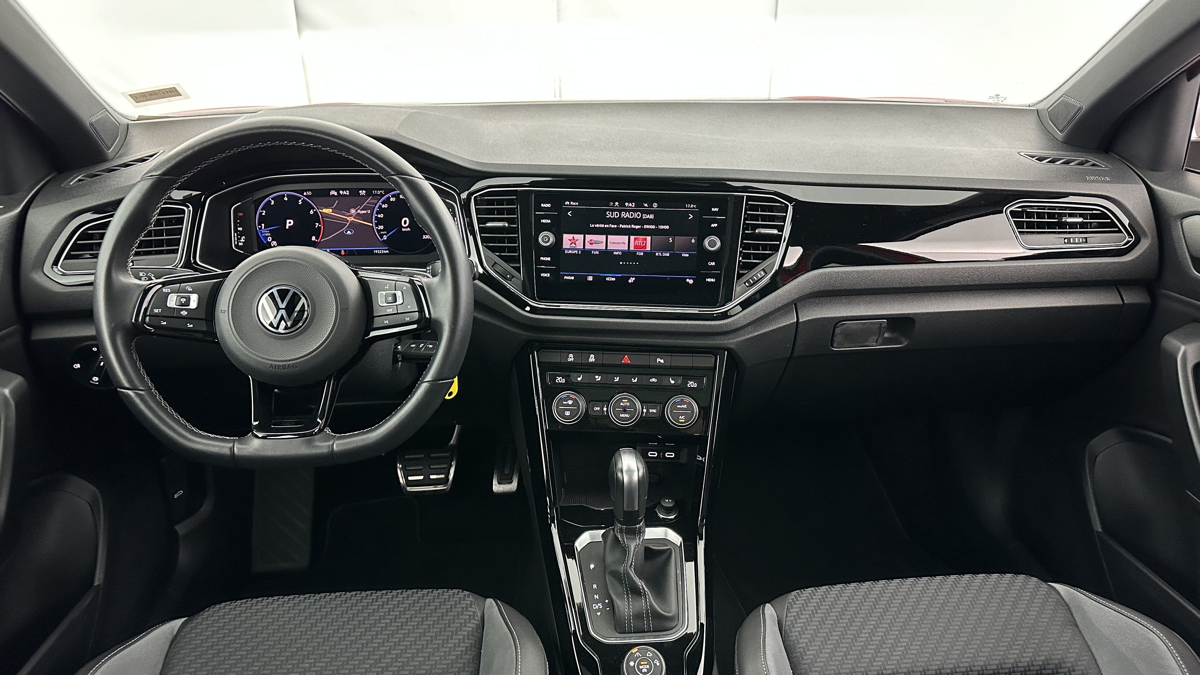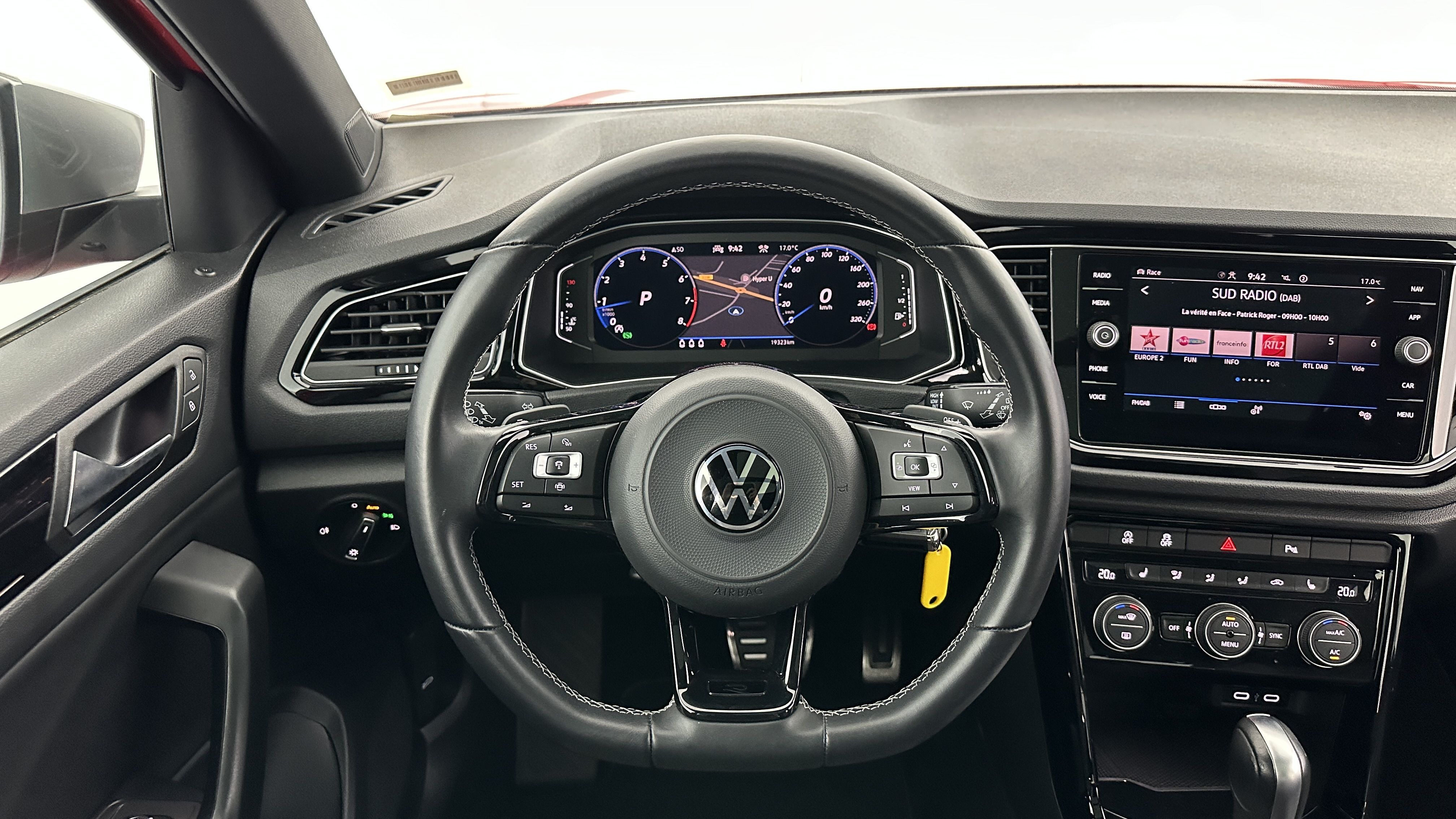 Volant Sport cuir multifonction 3 branches spécifique, siglé "R" et surpiqûres grises
