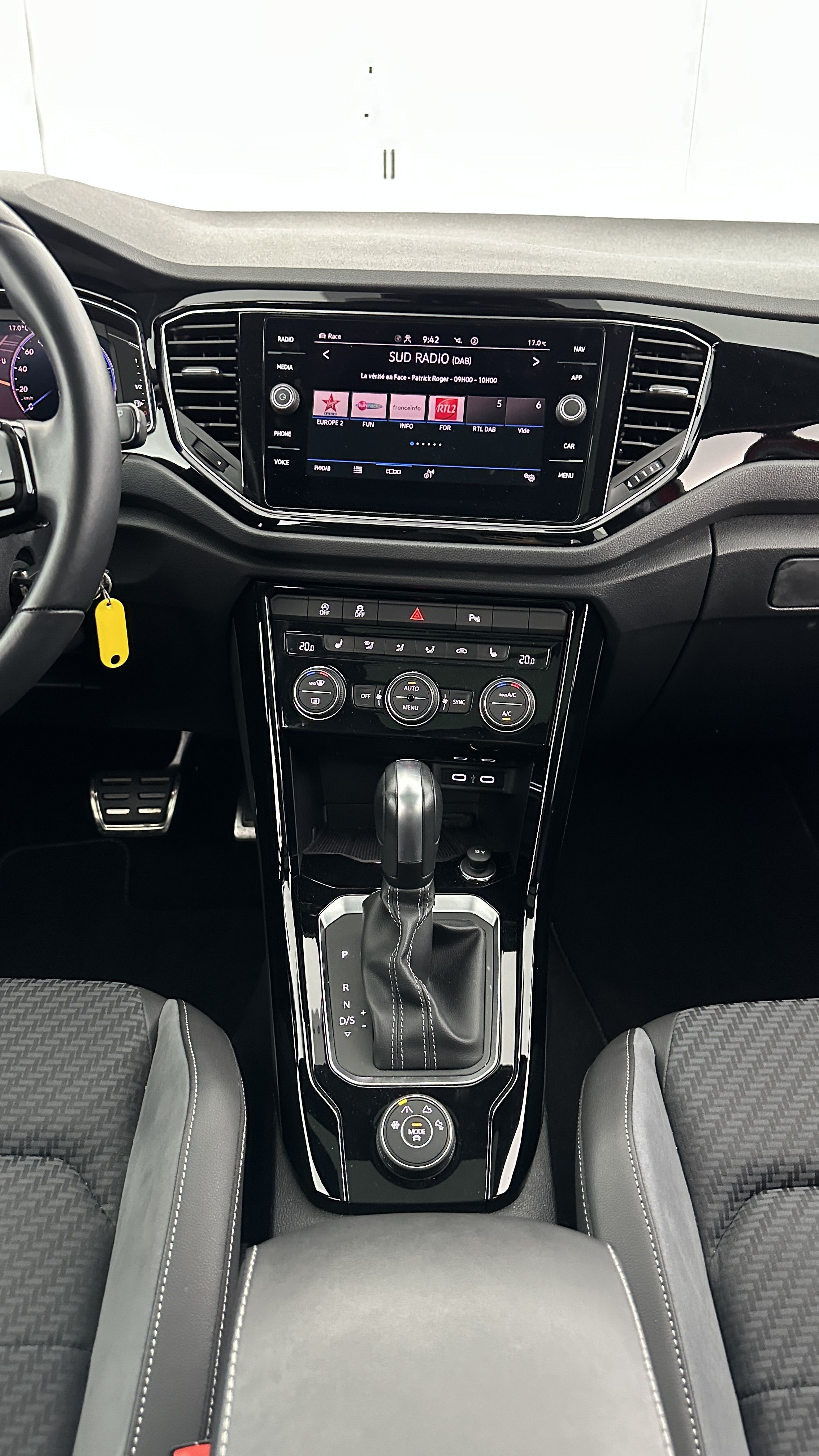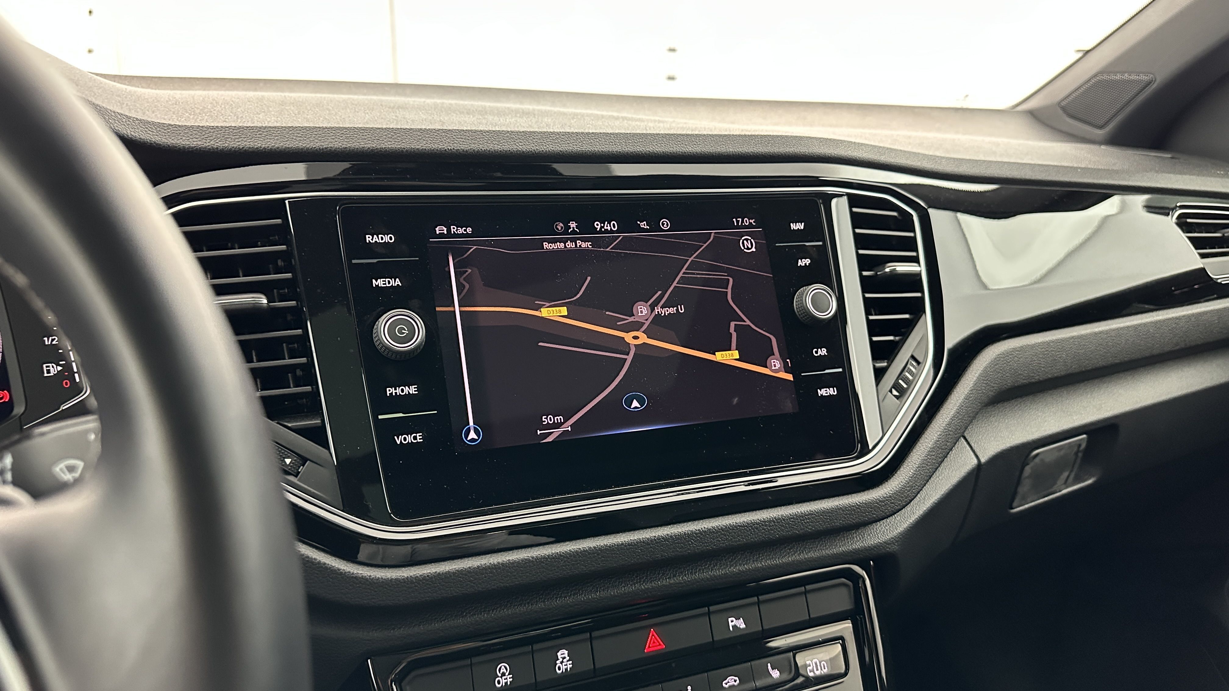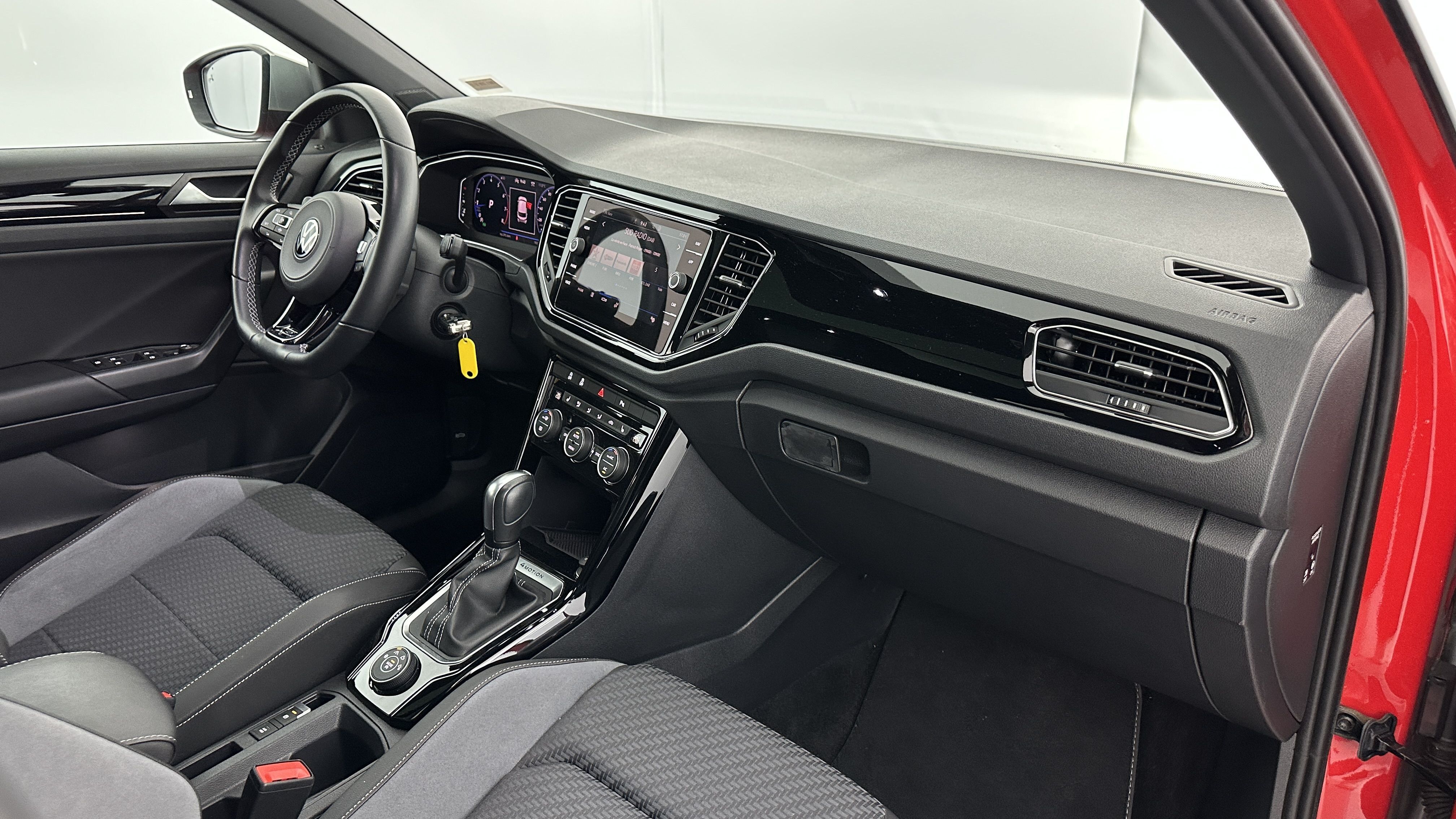 Volant Sport cuir multifonction 3 branches spécifique, siglé "R" et surpiqûres grises