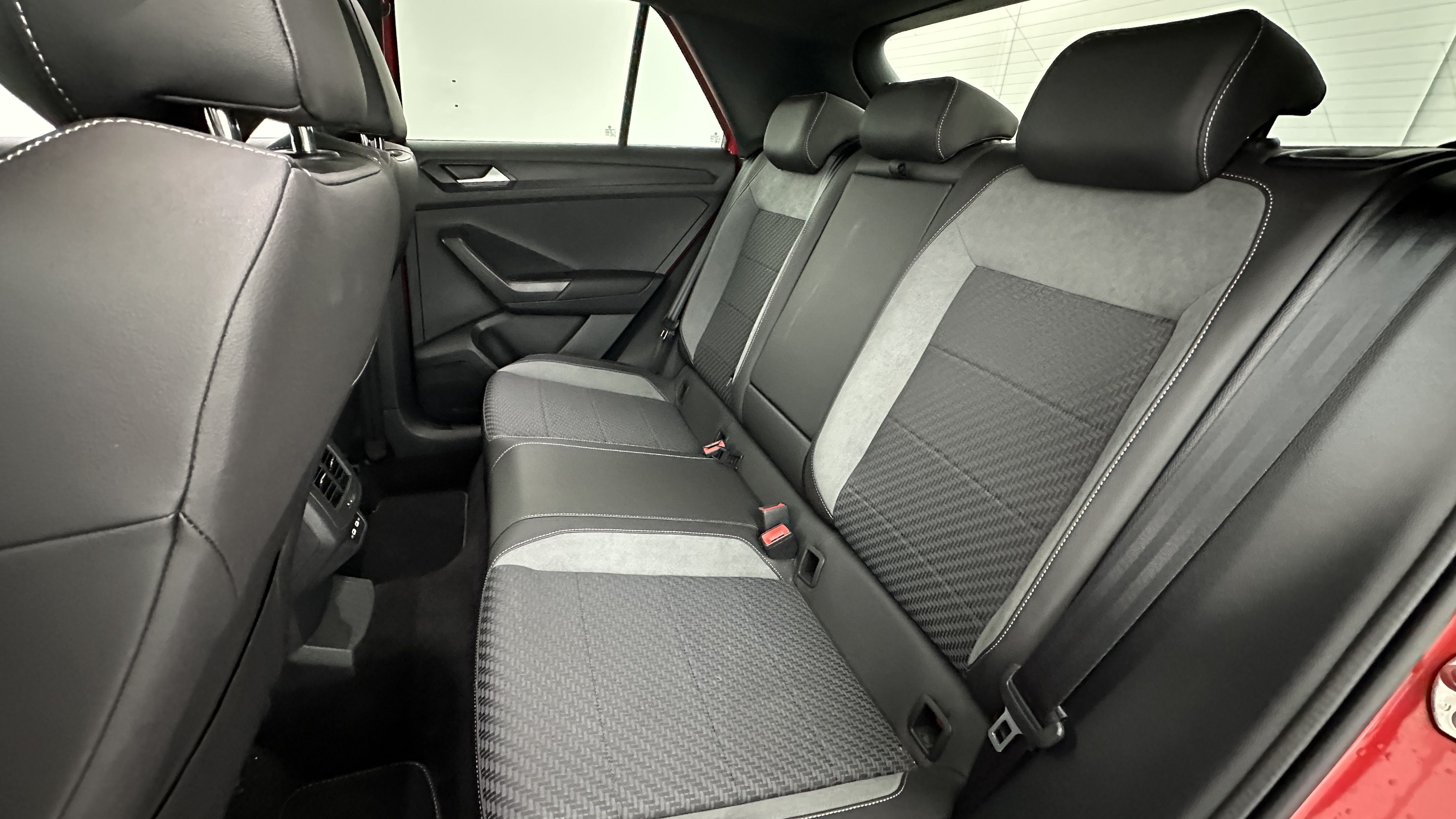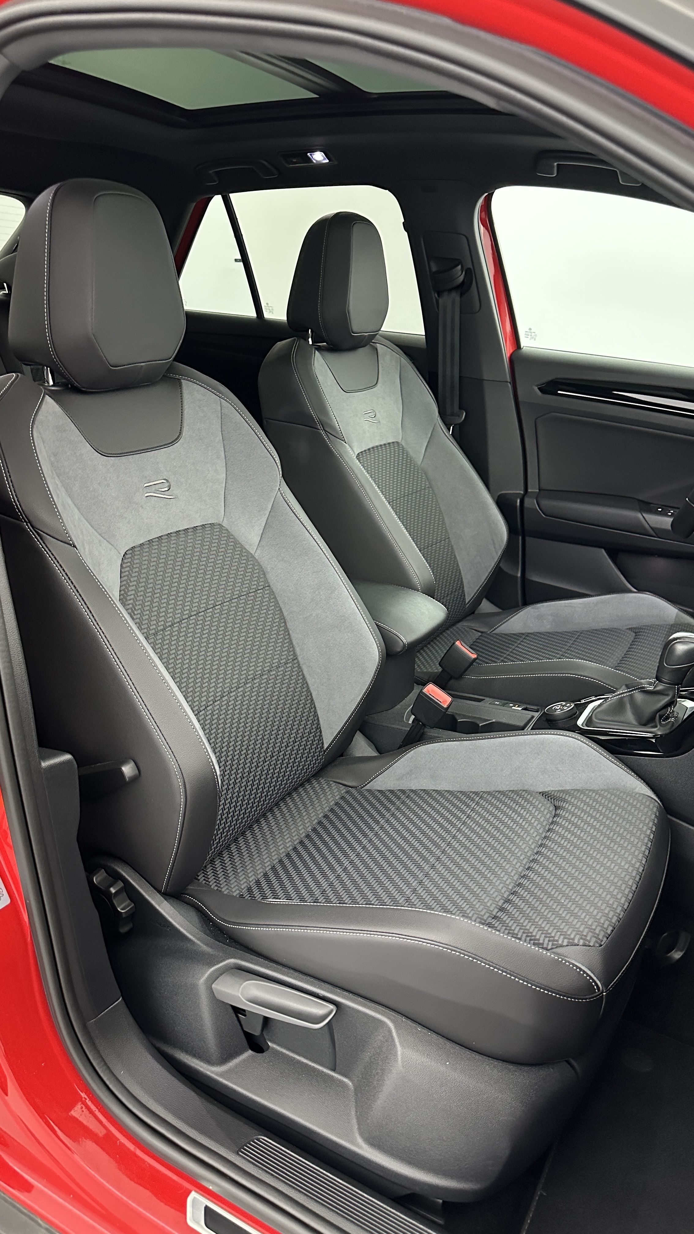 Sellerie spécifique tissu/Microfleece avec surpiqûres grises et logo R sur le dossier