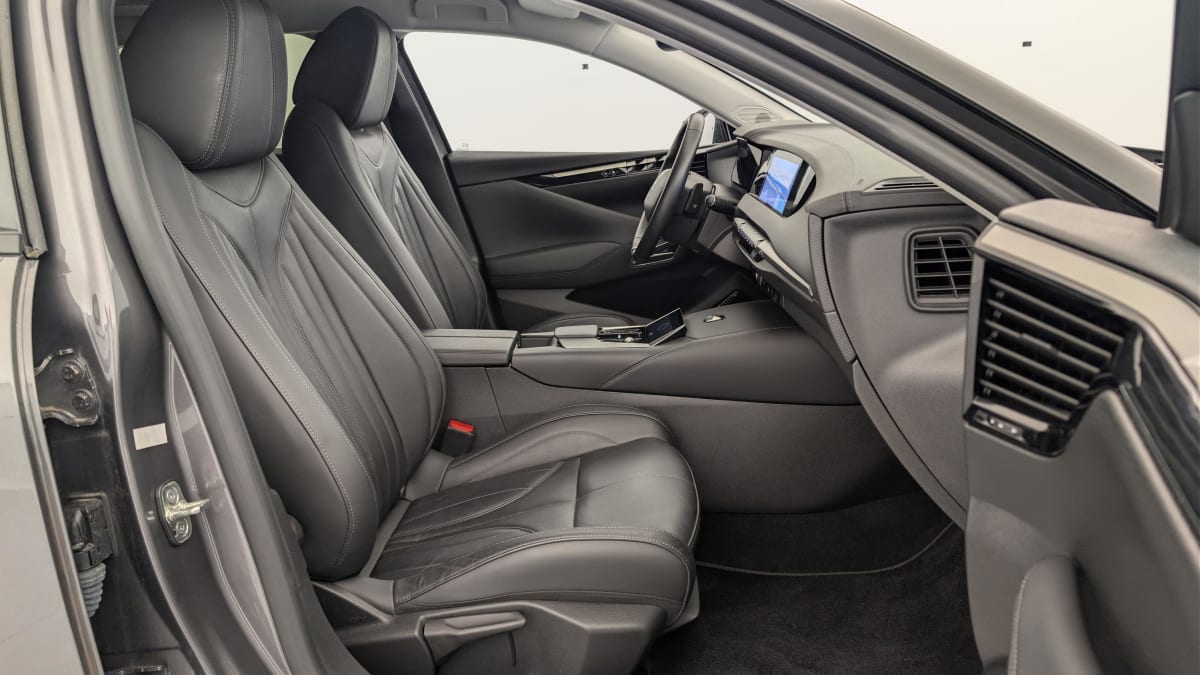 intérieur cuir grainé noir basalte et toile ds : ciel de pavillon clair décors de panneaux de porte chrome guilloché volant en cuir fleur mistral console centrale en toile ds mistral planche de bord en toile ds noir basalte façon écaille panneaux de portes en toile ds noir basalte façon écaille sellerie en cuir grainé noir basalte et toile ds parties centrales des sièges av, partie centrale des sièges latéraux ar et partie av des appuie-tête en cuir. bourrelets latéraux des sièges av, accoudoir central et siège central ar, et parties latérales et ar des appuis tête en toile ds.