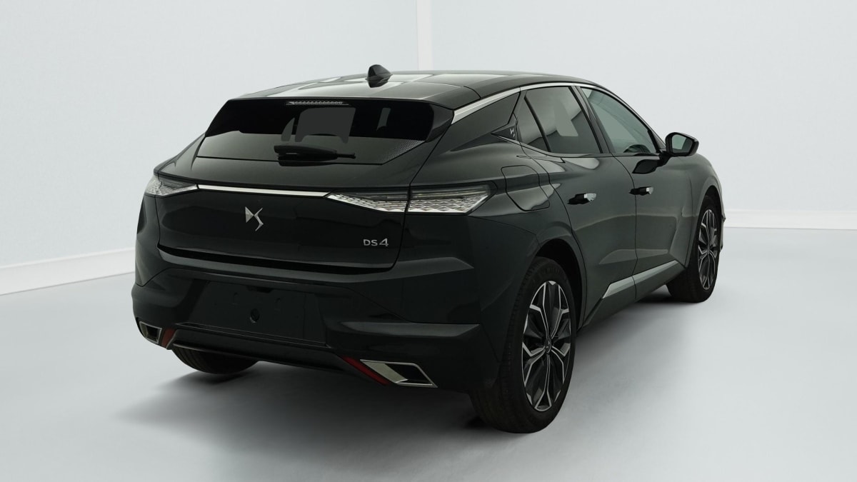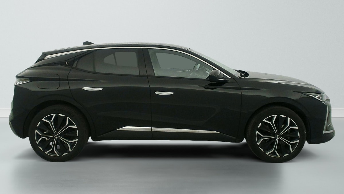 intérieur cuir grainé noir basalte et toile ds : ciel de pavillon clair décors de panneaux de porte chrome guilloché volant en cuir fleur mistral console centrale en toile ds mistral planche de bord en toile ds noir basalte façon écaille panneaux de portes en toile ds noir basalte façon écaille sellerie en cuir grainé noir basalte et toile ds