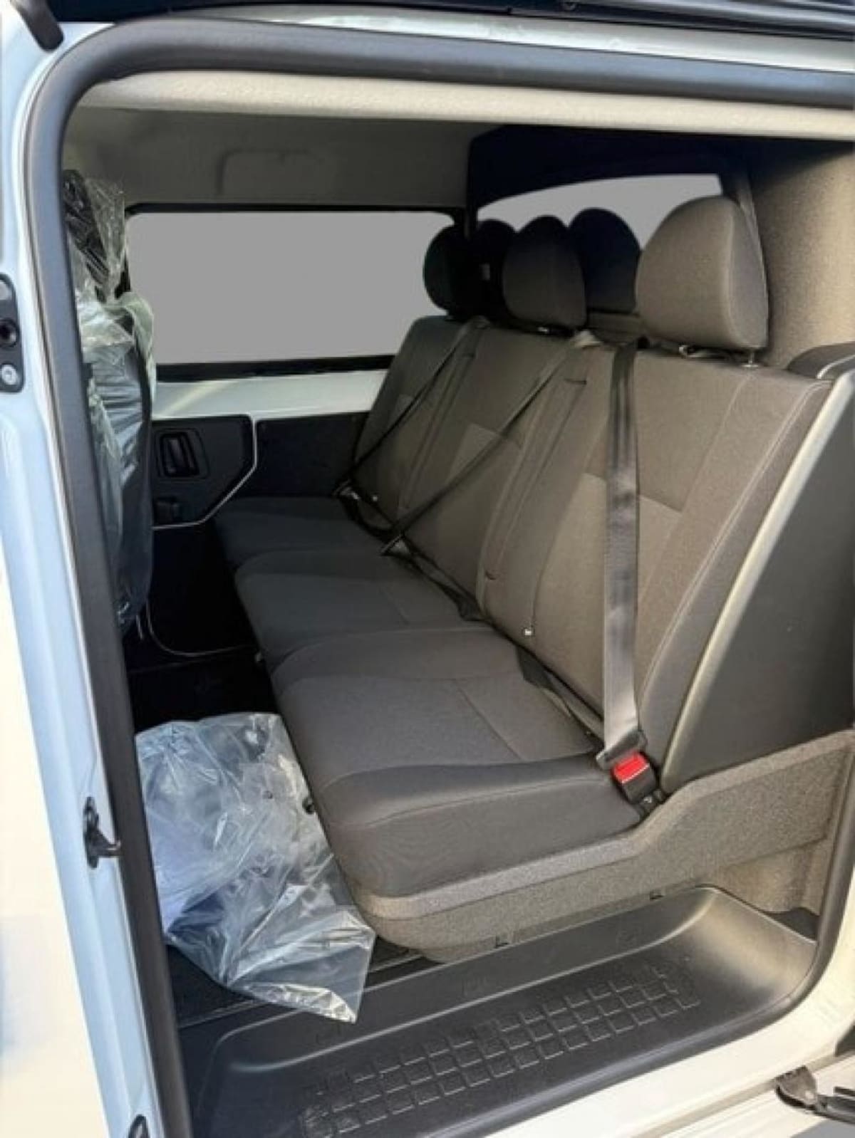 banquette fixe 3 places confort cuir en rang 2 avec appui-tête réglables et 2 accoudoirs, position unique conforme à la réglementation fiscale, avec coffre de rangement amovible sous assises gauche et centrale avec fixation isofix -size & top tether et ac
