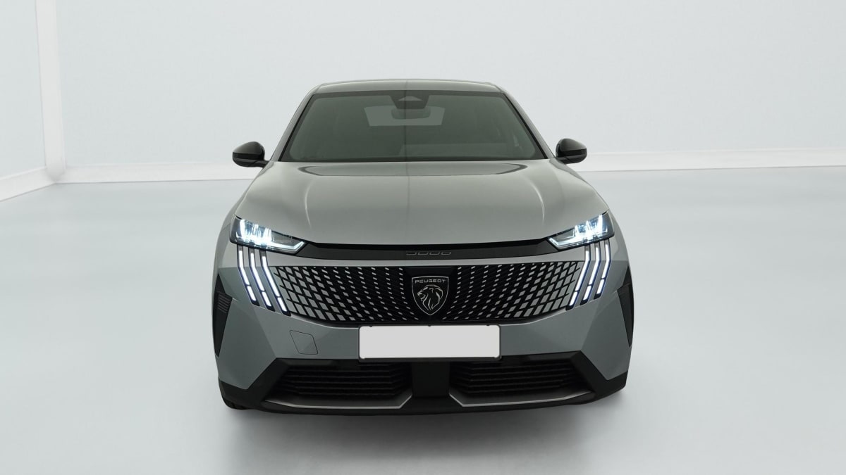 eléments de style éxterieur bandeau entre les projecteurs noir laqué avec logo 3008. calandre couleur caisse, écopes latérales noir laqué, décor inférieur gris meteor, jupe inférieure noir grainé. vitres ar, vitres de custode et lunette ar surteintées. lécheurs de vitres masqués. enjoliveurs de passages de roues et protections inférieures de portes noir grainé. bandeau entre les feux ar noir laqué avec lettrage peugeot. pare chocs ar avec décor gris meteor et jupe inférieure noir grainé, monogrammes av et ar