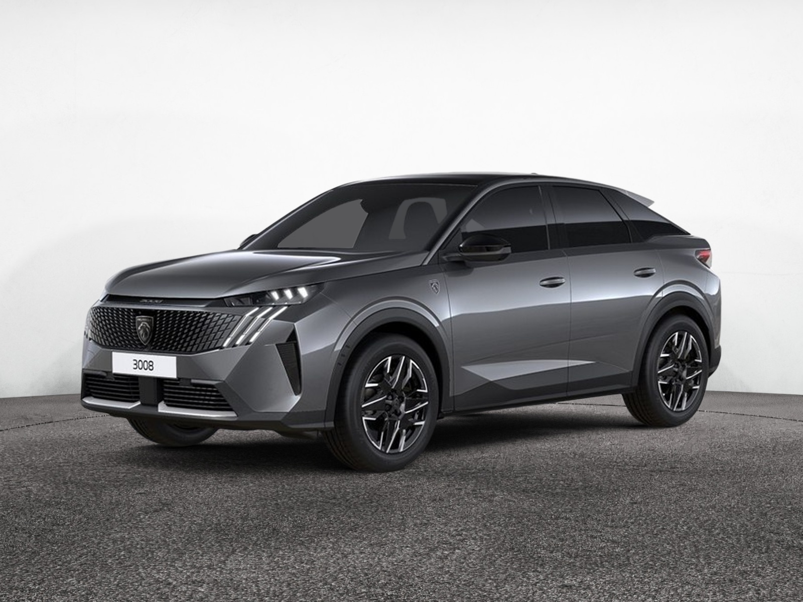 eléments de style éxterieur bandeau entre les projecteurs noir laqué avec logo 3008. calandre couleur caisse