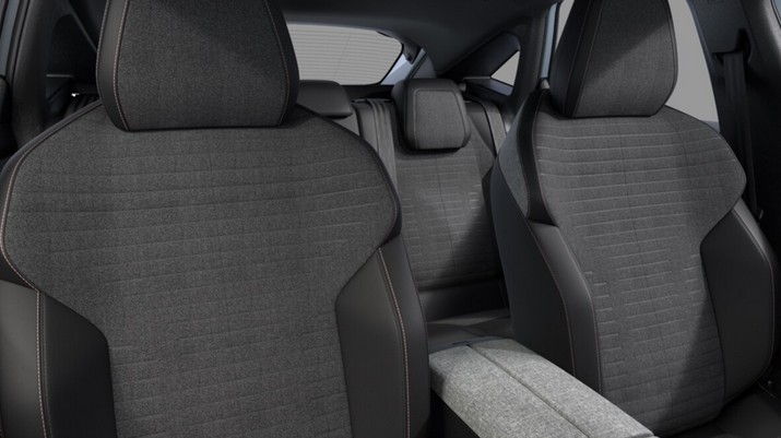 eléments de style intérieure : planche de bord moussée avec décor tissu rimini chiné et alcôve graphène