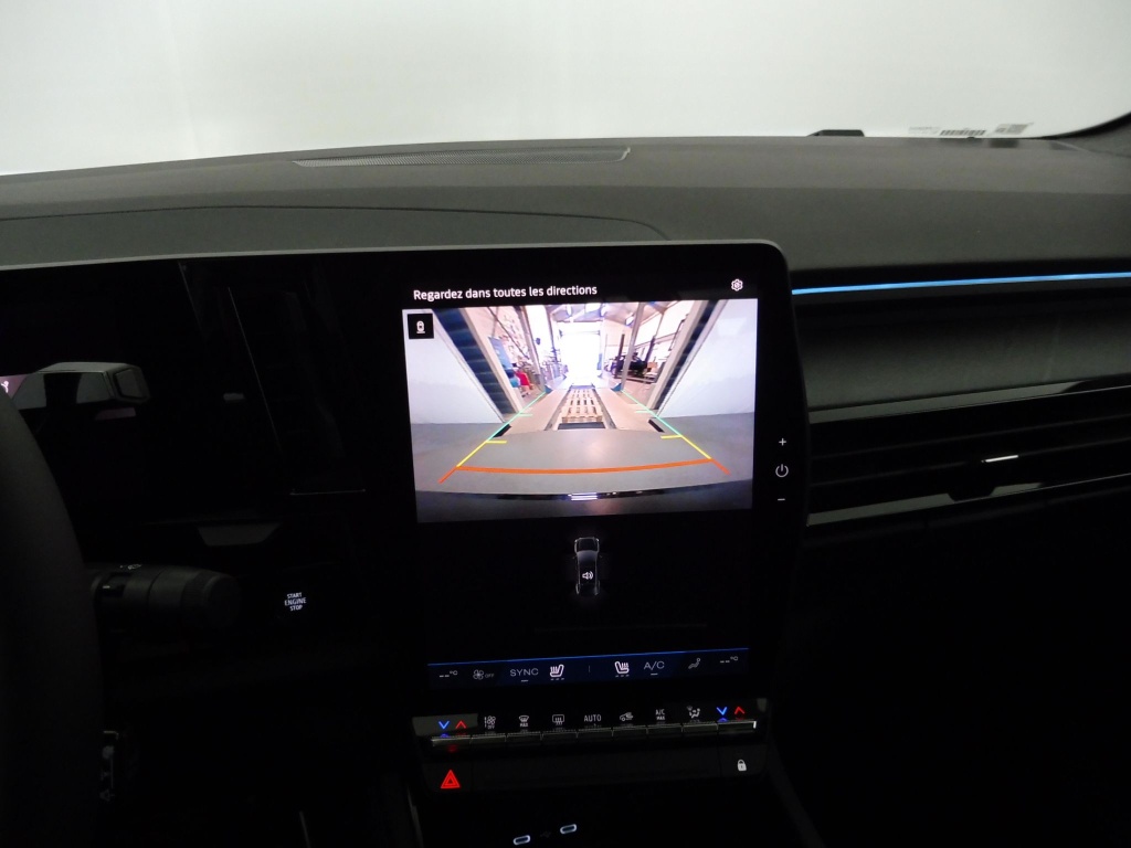 sellerie mixte alcantara avec surpiqûres bleues et logo alpine lumineux