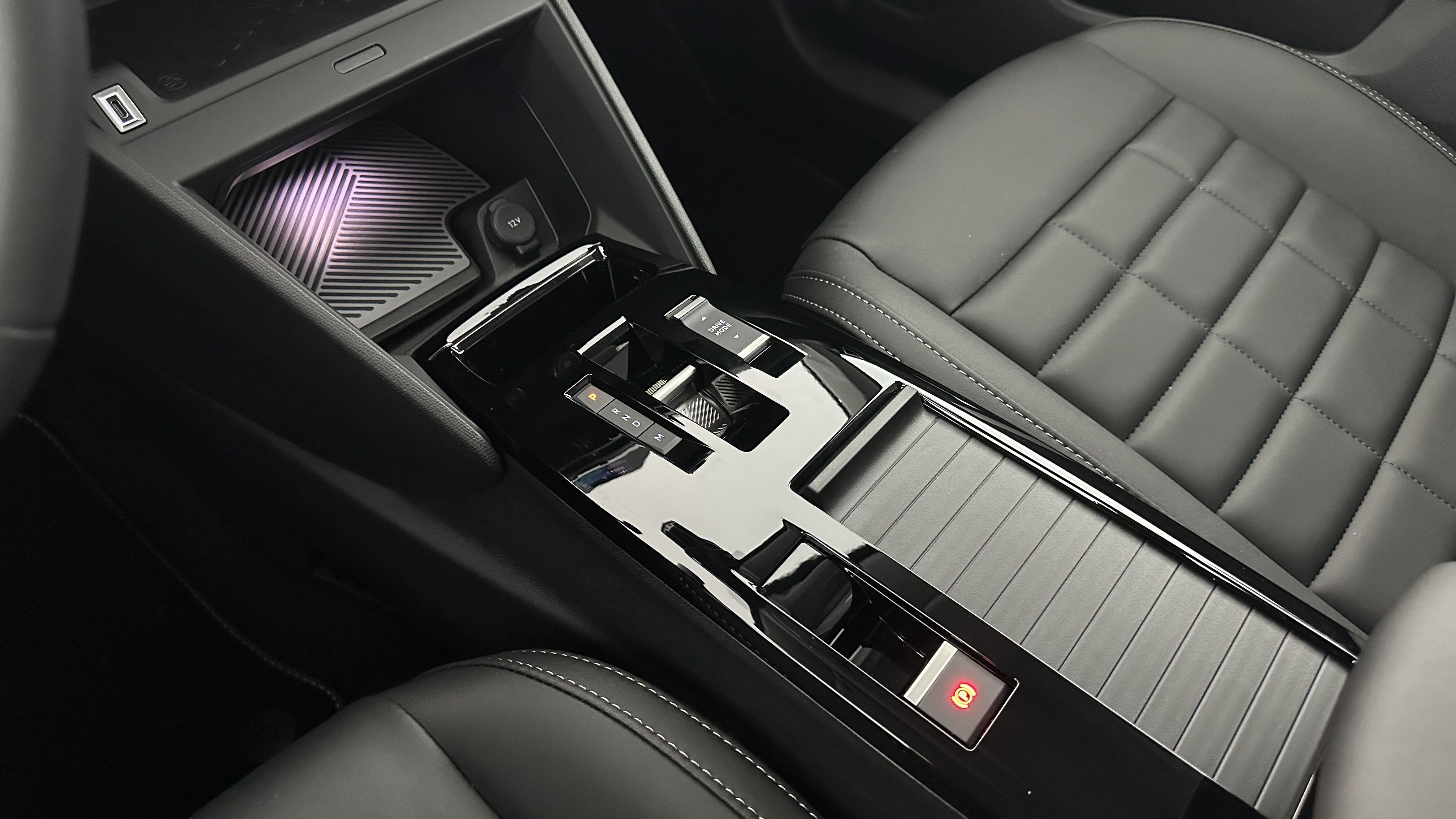 Console centrale haute avec rangements et accoudoir